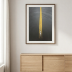 In Euphoria, the artist depicts the exact moment of liberation where the man-made and the natural find a harmonious, ecstatic resolution. A sharp, geometric obsidian spire—representing the peak of human industry and architecture—stands fixed in the center. However, it is no longer a symbol of cold utility. Instead, it has become a vessel for a magnificent, golden eruption. The “smoke” of the past has been replaced by a thick, textured trail of brilliant orange-gold energy that curls upward into a vast, rose-colored sky. The use of pink is intentional and transformative; it removes the weight of mourning and replaces it with a celebratory, dreamlike atmosphere. It suggests that when nature reclaims our structures, it is not an act of destruction, but an act of grace. The earth at the base, rendered in deep, mossy crimsons, rises up to meet the tower, welcoming it back into the organic fold. “When the soul finally outgrows its cage, even the stones begin to sing in shades of pink and gold.”